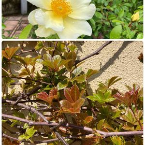 つるバラ💛🍃マーメイド𓈒◌𓐍𓈒° 琥珀を帯びた独特の クリーム色の一重咲きのお花💛🍃 4月末から5月に咲き始めます。 そのマーメイドの若葉たちが🍃 いっせいに芽吹き、ツヤツヤの葉が これから綺麗なお花を咲かせるからね💕︎ と言ってくれてる様な?🤭 ↑のマーメイドのお花は 昨年撮った一枚… 2022.5.15日にupしたものです♪̊̈♪̆̈ 今年もこのマーメイドの花が咲くのを 楽しみにしてます。 葉っぱは今年3月末に撮った一枚です🍃 今日、8日は🏷𓈒𓏸︎︎︎︎ 葉っぱの発表会.に参加させて下さ〜い。