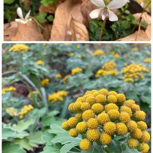 イソギク🌼*・と スミレ🤍🌿 クリスマスローズの蕾はないかな?😳 と眺めていたら、可愛いスミレを発見♡⃛ 小さなスミレさんでした🌱𓂃 𓈒𓏸 大きなミモザの木の🌳下に イソギク🌼*・の群生が… 改めて見ると、綺麗で可愛いお花です🤗