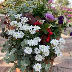 素敵な寄せ植え🌱𓂃 𓈒𓏸 お気に入りGarden🪴には 素敵な寄せ植えがたくさん 置かれていて心を和ませて くれます(♡ᴗ͈ˬᴗ͈) 素焼きの鉢の断面の一部が 割れた?割られた🤔所にも🍀*゜ いっぱいのお花達… 素敵な寄せ植え( *¯ ꒳¯*) この白いお花はイベリスかな… 優しい感じで気に入りました🤍🌿