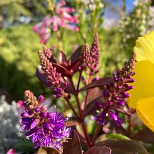 へーべ🍂🍃𓂃𓈒𓏸︎︎︎︎ カラーリーフ♪̊̈♪̆̈ 寄せ植えの片隅で咲いてました。 珍しいお花だなぁと思い、 Googleさんに尋ねたら へーべ… 秋になると気温が下がり 葉の色が緑からピンク、赤、 紫💜へと変化する… らしいです🤗 綺麗な💜花との出会い(♡ᴗ͈ˬᴗ͈) でした。