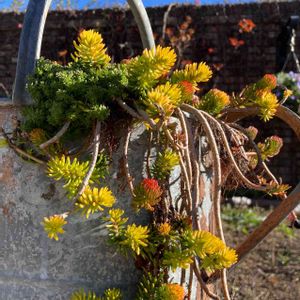 名前を知らない多肉さん達🌼*・ 大きなブリキジョーロに 植えられた多肉さんたち♪̊̈♪̆̈ 黄色く💛色ずいた姿が 可愛い(* ᴗ͈ˬᴗ͈)” 寒いけど? ずっとここで過ごすのかな… 頑張ってね🥹 2022..12月🍀👀..