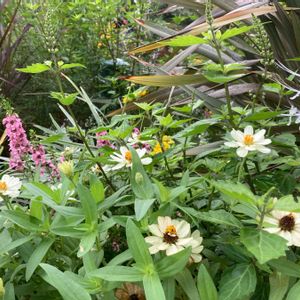 ジニア🌼ネコノヒゲetc. 皆んなで何を語っているのかな〜🌿 私のお気に入り自称マイガーデンの 一場面、おはようと声をかけて歩きます 🌼🌿🌸🌿