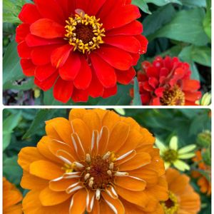 ジニア❤️🧡🍃𓂃𓈒𓏸︎︎︎︎ こんなに鮮やかだと 通り過ぎるわけには いかないわね🤭 綺麗な色ね… どちらも素敵よ(*´˘`*)♡ すご〜く元気もらえた♪̊̈♪̆̈ ありがとう🌼.* 今日も笑顔で🍀*゜ のんびり気まま花散歩🚶♀️𖤣𖤥𖠿𖤣𖤥
