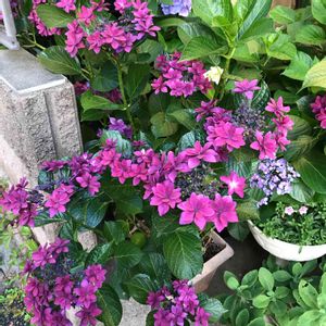 こんにちは🙋♀️ 紫陽花の花 4種類の開花🙆♀️❤️❤️ 鉢は数えたら8鉢植え替えたのや挿し木で育ったのがあります🎶 右上 ダンスパーティ 左下 万華鏡 島根県オリジナル あとの2種類は名前がわからない💦 友から挿し木したのをいただきまました😘 左上はこんぺいとうかな?? あとひとつ まだ蕾が小さい鉢があるから そのうちに開花するから楽しみ🎶 残り3鉢は葉っぱのみが盛り盛りで今年は咲かない感じがします(*´Д`*) 剪定が悪かったのかな…… 万華鏡が一番花数も沢山さいて色も変わるから見応えあります😘 できれば地植えで育てた方が楽なんだけど もう場所がない(*´Д`*)