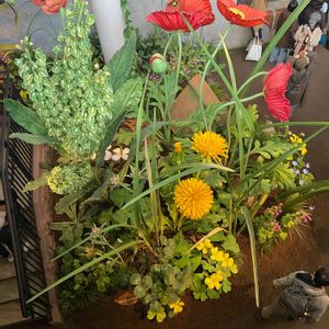 ジブリパークに行ってきました。 借り暮らしのアリエッティのエリアでは自分が小さな人になった気分で巨大な雑草たちに囲まれます。 その再現度と、選ばれた草花の種類に感動しました。 写真にある真っ赤なポピー、タンポポ、ギシギシの他、オオバコ、カタバミ、ホトケノザ、オオイヌフグリ、ドクダミ、ハコベ、チチコグサ、カヤツリグサ、クローバーなどとっても身近な花たちを見上げてウキウキしました。 大きなダンゴムシやナメクジもいましたよ。