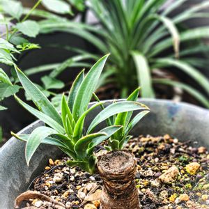 ユッカリギダ 鉢底から根がはみ出ていたので植え替えしました 大きめと鉢にして小さなドライガーデン風にしてみました
