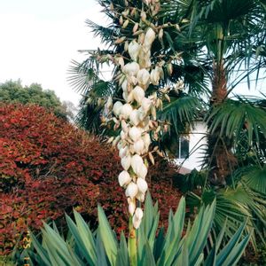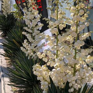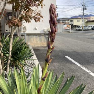 通り道沿いに植えられているアツバキミガヨランです。10本のうち9本が 花を咲かせてます。