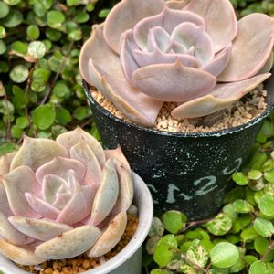 久しぶりぶりの投稿よ〜 夏はだいぶやられてしまって落ち込みがひどいけど だんだん可愛くなってきた多肉達に元気をもらってるよ〜 暑さや蒸れによく耐えてくれたね💕︎ ピンクで薔薇のようなマリリン ブロ友からいただき大きくなりました(*´▽`人)アリガトウ♡