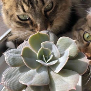 今日はにゃんこと一緒に(゚∀゚) 左がうたまる、右の見切れてるのがごま、親子だよ(o´・ω・人・ω・`o)♪︎ マリリンは幅広の葉とその中心の溝が綺麗に整ってていい感じ!