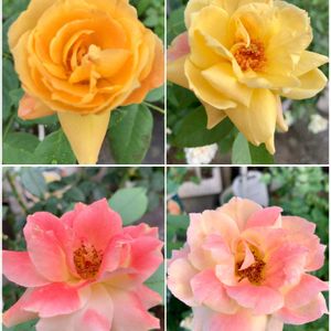 トロピカルシャーベット♪ 色変わりを楽しめるバラ💛🧡❤️🩷夏顔は春とは違いますがこれも可愛い☺️💕 元気いっぱいのビタミンカラーや複色のバラは庭が明るくなって良いですね🙆🏻♀️ ④春のバラ園のトロピカルシャーベット✨