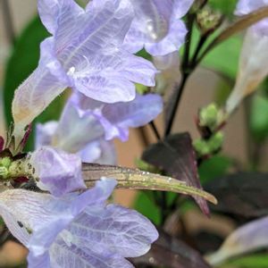 🏷6日はカエルの日 🏷カエル仲間 JINROのマスコット(トゥッコビ)と沢山のカエルちゃんで参加します🐸 ➀サンクエール ディープブルー ペチュニア ブラックパール アカエナ ➁ヒメシャジン(姫沙参) 去年お迎えして咲いてくれました 🤍(⁎˃ᴗ˂⁎)🤍🌿⤴︎⤴︎ ➂姫シャジンの葉🌿幅が違うなは何故でしょうか? ➃撮影中アゲハが入って来ました🦋 ➄ハートホヤとカエルちゃんたち集合です🐸🐸🐸🐸🐸🐸