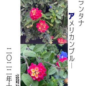 秋色ランタナとアメリカンブルーのスリットバスケットです。アメリカンブルーはお花がだいぶ小さくなりました꒰ ´͈ω`͈꒱ 両端には白のニチニチソウがいますが葉が黄色くなり写真には残せませんでしたʕ⁎̯͡⁎ʔ༄