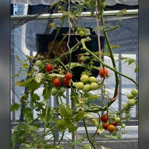 多肉植物のビニールハウスの隅っこにいるのは、使っていないスリット鉢で育ったミニトマトです☆(≧∀≦*)ノ 目の前に実があって収穫しやすいです∩(´∀`)∩ワァイ♪ すでに中盤に差し掛かり弱ってきましたが頑張って実を熟してます🍅 2枚目は苗を植え付けた時に折れた枝の挿し芽から実ったミニトマトです🍅🤩