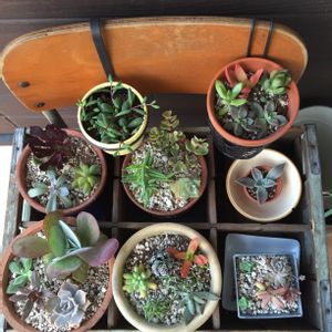 はじめまして!あぶぅと申します⸜(๑⃙⃘'ω'๑⃙⃘)⸝ マルシェでmerrybellさんに出会い、 やっと納得いくディスプレイにできたので初投稿します♪ ほぼ100均や3coinsなど、 プチプラでコツコツ集めた子達です笑 真ん中のサボテンと多肉の寄せ植えは、 シャボテン公園にて人生初のシャボテン狩りしたお気に入りです♡ 初心者ですが、宜しくお願いします☆