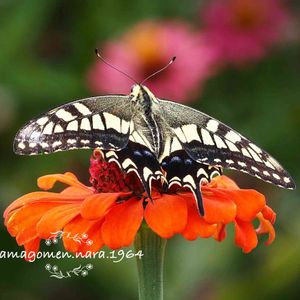 ヒャクニチソウ(百日草) 大人気な百日草のお花に並揚羽 εïзꔛ