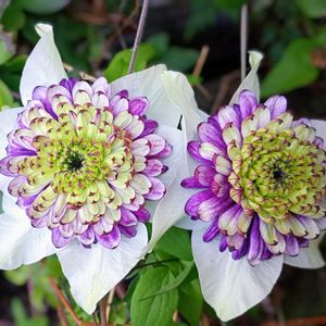 予報どうり天気は回復、快晴☀です 我が家のクレマチス「ビェネッタ」も咲き始めましたよ〜♡♡♡ もうかれこれ10年近くのモノ✿🌿になるかと🥰 我が家のクレマチスの中ではデリケートさんで、一度鉢増しして「もしかしたらダメ⤵😱❓」を経験して以来、見守りだけです😂 🖊白い所は萼、咲き進むと白い萼が散り落ち、紫部分は菊花のようになります🏷😉