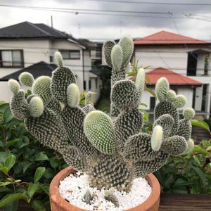 おはようございます🌩 ✨バニーカクタス 白桃扇✨ 購入してから3年になります。 ずっとこの名前で育てていましたが グーグルで調べてみても 金烏帽子、銀烏帽子と いう名前がついたりしているみたいです。 詳しい方がいらしたら教えていただけるでしょうか? 大きなウチワサボテンは地植えで元気にしていますが、この子は無理ですよね?💦 モヤモヤしています。