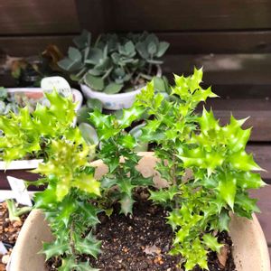 おはようございます☔️ 激しい雨が降ってます☔️ ✨ヒメヒイラギ✨ これはずっと前に近所の友人からもらって挿して ついたものです。 雨の前に撮りましたが、新しい葉がでで とても綺麗です。 その後何回か挿し木しましたが、すぐに 茶色くなってつかないです。 この時は何が良かったんだろうか? この子達を大事にしたいと思います🪴