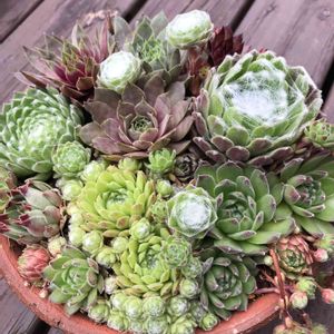 おはようございます☀ うちの✨センペルビウムたち✨ あまりにぎゅーぎゅーで形がひしゃげて きたので 植え替えました。 そしたら またおしくらまんじゅう状態です。 小さな子がいっぱいなので また動かすのは ためらわれます💦 ぎゅっぎゅの方が好きなのね💕 でも夏になったら 蒸れないようにしてあげるね