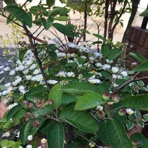 おはようございます☀ ✨ジューンベリー✨ 形になってきました、コロンとして可愛いです。 今年は花が沢山咲いたので 実もたくさん❣️ 小鳥さんと競走ですが、私の口にも入るかな?