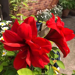 ✨アマリリス✨ が咲きました 大きな花ですね〜😳 とても力強く 存在感が凄い❣️ 実は 4分割した球根は まだ生きていますが 新葉はでてきません 根の部分は盛り上がっているところもあり、 なにか起きそうですが、球根は可哀想だった かもしれない💧 やっぱり甘く考えてはいけないということ ですね 反省😰