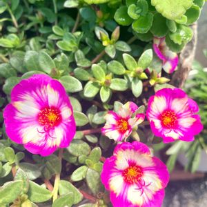 ☆♦️夏チュラカ♦️☆#ピンクフレンチ# 夏の日差しを受けて開花しました❣️ ホントはこちらのGSpicで拝見した斑入りが良かったのですが、どこにもなく💦 でもこの紅白のグラデーションが爽やかで気に入ってます💕 上⬆️に見えるのは*アロマティカス* 葉が厚く水切れにも強そうです😊