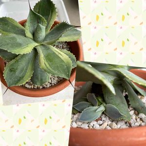7日🏷️アガベの日 フォロワーさんの真似をして笹の雪黄覆輪ポチりました😅 フォロワーさんのとだいぶ違う気がしますけど大切に育てたいと思います(〃∇〃)♪