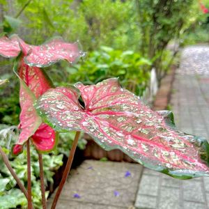 カラジウム・ハートトゥハート♡ にわか雨の後、葉っぱの上で キラキラ水玉がコロコロ°。\\(*´∇`*)//。°