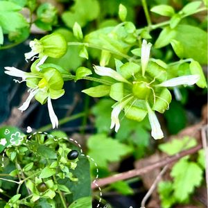たしかこの辺りだったはず❗️… ふる里の散歩道沿いをキョロキョロ👀💦、、 「わーい!咲いてた ~🙌💕」 ↙️早くも実になってるコもいたよ♡⚫️ 『ナンバンハコベ』南蛮繁縷 ナデシコ科 別名・ツルセンノウ(蔓仙翁) 名前の由来は日本に自生しているが、草姿が独特で異国風に見え、花がハコベに似ることから。