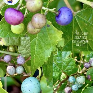 ふる里、散歩道より… 素敵カラーに色づいてきたよ ~♡( ◠‿◠ ) ノブドウの実🔵🟣🟢 こっそり実に紛れてるペコちゃんデス♪🤭 『ノブドウ』野葡萄 ブドウ科 別名・イヌブドウ🐕 カラスブドウ🐦⬛ 🏷️ペコちゃん祭り