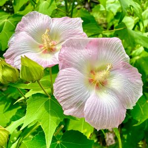 今日のお花*フヨウ ふる里、散歩道沿いで咲いてたよ… 白🤍花弁に混じるピンク🩷、可愛い~♡