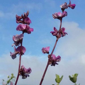 ドリチョス ラブラブ ルビームーン 昨年種から育て 種を採りました😊 蔓ばかり伸びていますが やっとお花が咲きました🎶 朝 青空をバックに撮れました😊