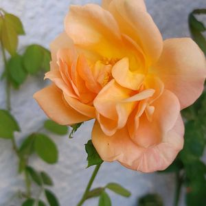 初開花!レディーオブシャーロットです。 淡いアプリコットオレンジで、細い茎なので花が重たそうになってます。 このまま大きく育ちますように