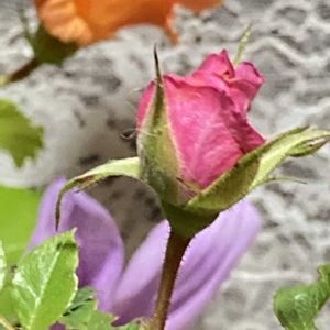 開花した🌹マリーさんを日陰の玄関先に移動させ、10日間。 いい加減にカット✂️しなきゃと思いつつ、 ニタニタしながら眺め続け…👀 『かわいい〜』💓 を連発しています🤣🤣 ガーベラもずっと咲いて 止まったままです🤭