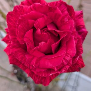 今日、帰ったら 開いてた🌹 ちょっと縦長の変顔🤪 でも明日には普通のまん丸になるのを私は知っているーー 4枚目は下から撮ってみました。 大して変わらないか(笑)