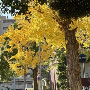 銀杏並木🍂の勇姿 (約2週間前) 今は見る影もない😁 黄色い葉っぱが街の華やぎに✨① 青空とコラボしたり② バラが銀杏🟡黄色に呑み込まれ③ バラ🌹と銀杏で、陰と陽④ 不思議な時間⏰