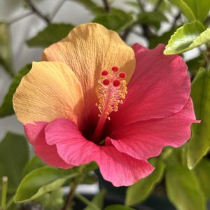 ①剪定を先延ばしにしてとりあえず室内にいれた🌺ちゃん、なぜかバイカラーに🤔 ②もう一つの蕾もきれいに咲きました🍀