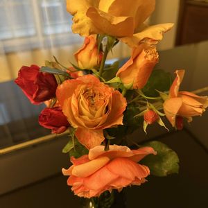 少しずつプレ剪定に取り掛かってますが、まだ葉っぱは青々🌿 膨らんだ蕾もわんさか🥀 きっと咲くことはないと思いますが無慈悲にハサミを入れることには罪悪感を覚えずにはいられません💦 私の魔の手を逃れて咲いたオレンジ系のバラを花瓶にインしてみました。