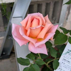 おはようございます☀ 買ったバラが咲いてましたよ〜🌸