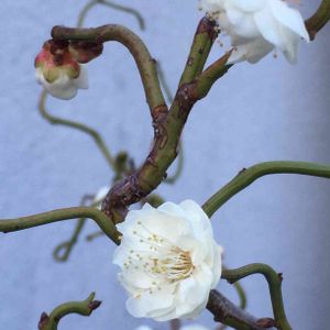 雲竜梅(ウンリュウバイ) この冬は暖かくて、すでに咲き始めました。 雲竜なので…枝が勝手にクネクネねじれる、ちょっぴりひねくれ者の梅です。