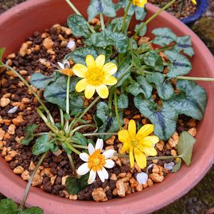 ミニ鉢の寄せ植え🍃 色々と植えてあります。 ヒナソウ、ベリウムペビリアンデージー。 真ん中に、ヒメタデの小さい芽が出てきています🌱😊 細い葉は、すずめのかたびらって言うのかなあ? 雑草だけど、雑草って割りと好きで、庭に生えてるのを寄せ植えで使ったりします💦 この鉢はそろそろ植えかえします。 小さい鉢なので、根がすぐ伸びちゃいます😓 苔も新しくしてキレイにしたいです💚