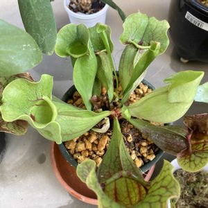こんにちは☀️ いや秋どこいった!?って暑さなんですが🫠 先日、お友達と神戸で開催されていた植物イベントに行ってきました🚗³₃ 寒くなるし、今回は何も買わない…という気持ちで行きましたが、まあそんなわけもなく🤣 サラセニアさんを2色ゲットしてきました〜☺️ 一人暮らしの頃に、もう少しひょろっと長細いサラセニアを育てていたのですが、部屋の日当たりが悪すぎて☆にしてしまい…😭 このプリっとした子で久々のリベンジです。 全く同じ、「サラセニアプルプレア sspベノーサ」という種類なのですが、個体によって色が違うそうです。 赤も緑も可愛すぎて選べなくて、セットで持ち帰ってしまいました😂 フワフワの起毛と、血管みたいな葉脈がたまらん可愛い🥰 タンクブロメリアみたいに中にお水溜めて育てるらしいです😳 元気に育ってほしい〜