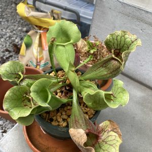 食虫植物👍 後ろの子は何年も家に居るけど一度も花咲かせてないです💦 変わった花で凄く綺麗なんですよ❗ 冬は雪の下でも越冬出来ますよ🤭以外に強い👍 前の子は今年お迎えしました。 この子は越冬できなくは無いけれど根がまだしっかりして無いので今年は家の中へ😂💦 大きくなるとかっこいいぜ😁👍 🏷毎月16日は色の日