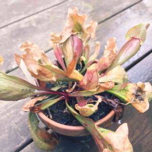 去年の葉っぱが半分ドライになったサラセニアプルプレア(*´ω`*)