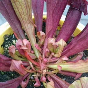 おはようございます😃 昨日来ましたサラセニア・プルプレア💕 中には新芽も出ています😆✨ 色が何ともいえんです😚