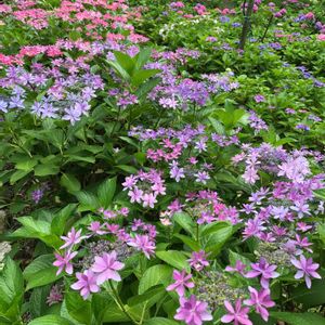 つぶつぶ、咲いてきてますね。ガクアジサイにもいろいろな種類…かわいいな。