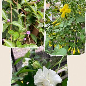 ☆庭のお花達☆ 今日は曇り空、 午後から雨の予報 裏庭のお花 ←ニオイバンマツリ、何年か前には、 元気に咲いていたが、いつしか 枯れて、もうダメだと思って、 木も1mぐらいに切ったところ 下の枝から蕾発見、ウレシイ →キソケイ、30年前頃、 生花の材料の枝の挿し木から 大きくなり、枝もしなやかで いい香りの黄色く可愛いお花を 咲かせてくれます〜 ↓白いバラ(名前不明) 昨年、友達から頂き鉢ごと 裏庭(陽当たり良くない)の 少し朝日が当たる場所で 様子見してます あまりトゲがなく、茎も5mm位 で、しなやか。この場所で花が 咲けばいいかなぁ?