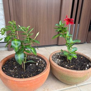 セダムも暑さのせいで残っているのは少ないです 気がつくと跡形も無くなっていたり 寄せ植えも油断すると枯れてしまいますどうにか残っているのは日々草の鉢です大きな花を咲かせています💕