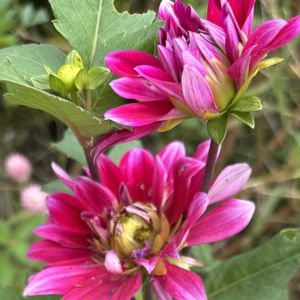 ポンポン咲きのダリア可愛い色です 夏の寄せ植えトレニアは三色寄せて❣️ 暑くても頑張って咲いてます💕