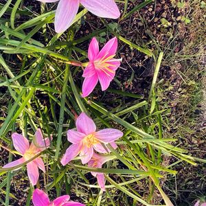 こんにちは😃 朝日に、輝いていました😊💕 いつ迄、咲いてくれるのか? 消えては、咲を繰り返しています😊 花壇で、芝と一緒に咲いでくれて 嬉しいです😅 いつ見ても、かわいい😍花です🤭